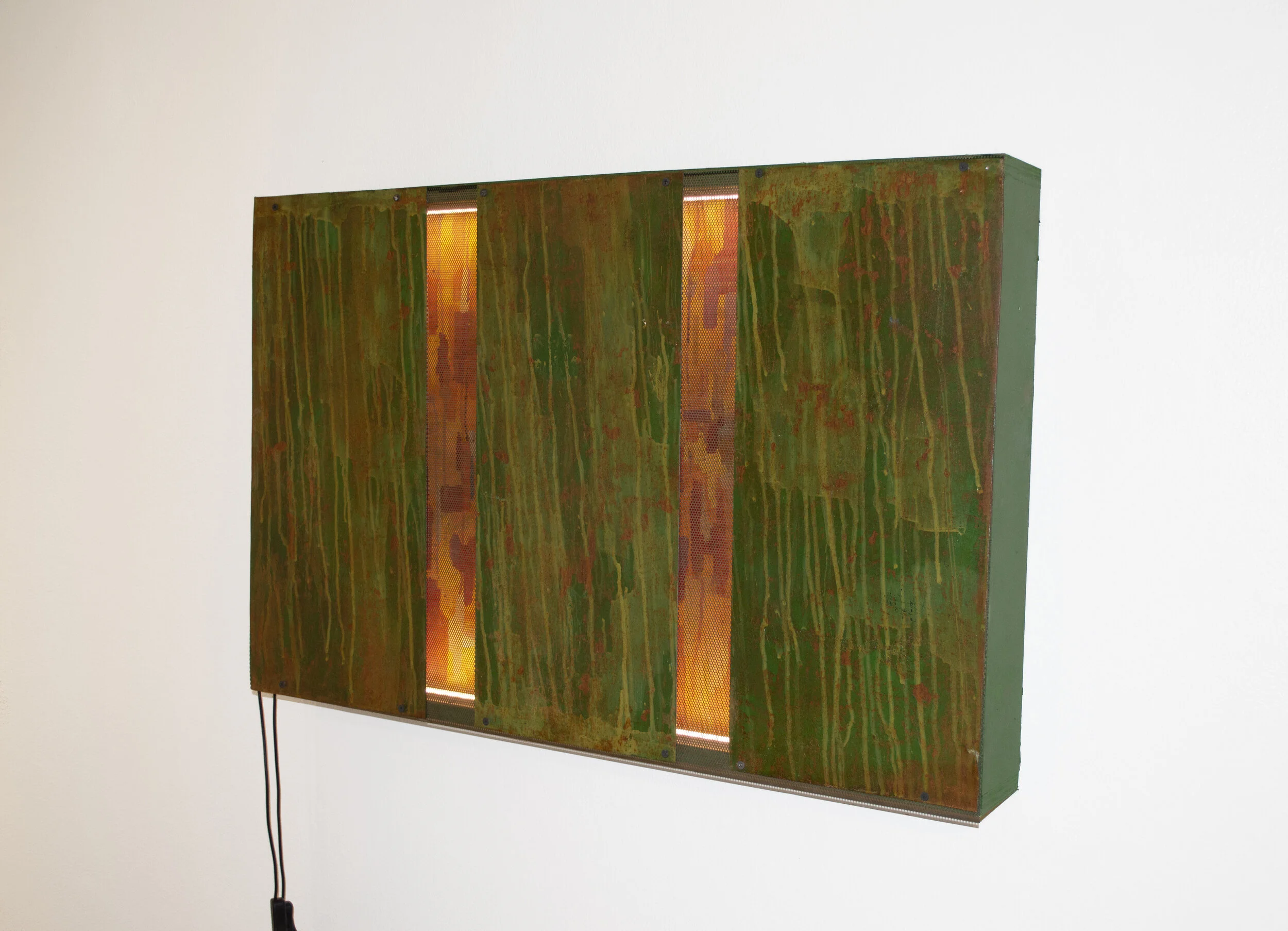 Acrylic, Steel, Wood, LED Lights.