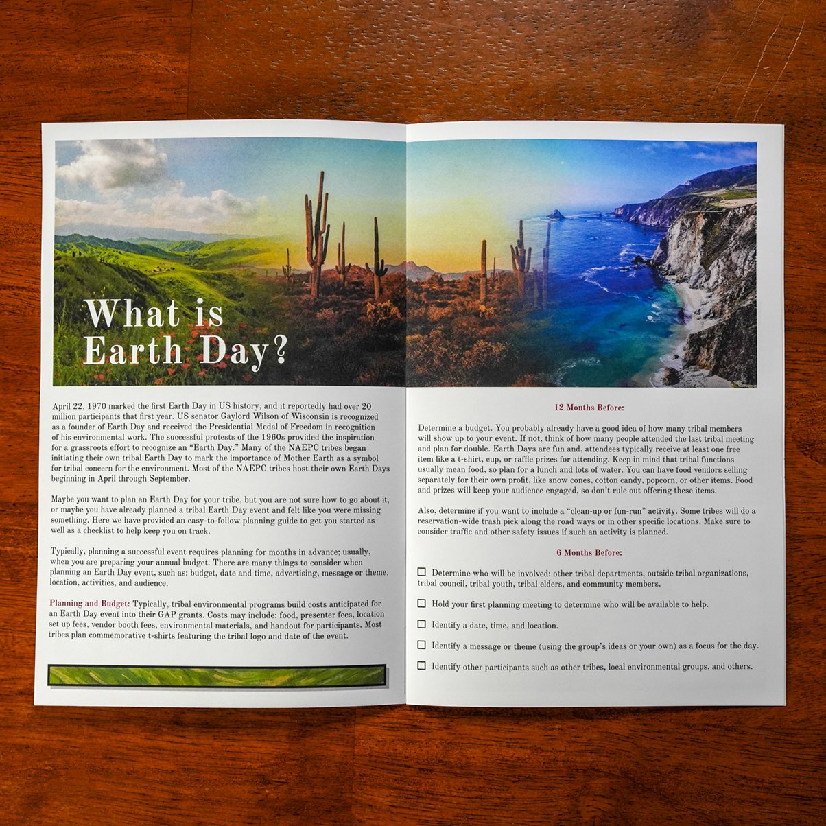 The Native American Environmental Protection Coalition (NAEPC) is a tribally driven organization that is dedicated to providing technical assistance, environmental education, professional training, information networking, and inter-tribal coordination. The organization’s goal is to become a recognized leader for environmental stewardship through creating and promoting resilient partnerships while embracing tribal culture and traditions for present and future generations. These banners, flyers, apparel, and brochure designs were created to raise awareness about different programs to tribal community members in a way that is clear, informative, and visually engaging.