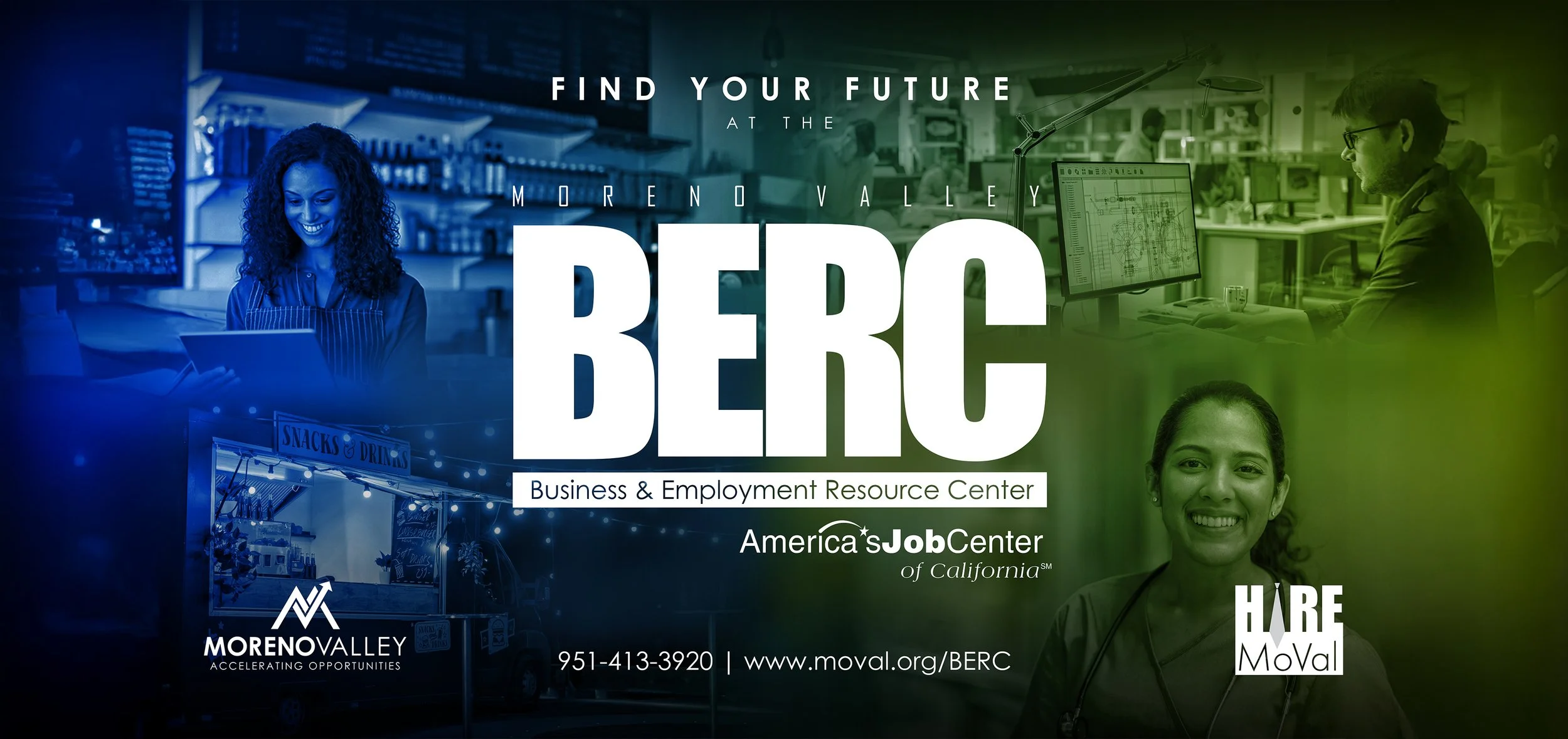 The Moreno Valley Business & Employment Resource Center (BERC) is a one-stop center directed by the Economic Development Department of the City of Moreno Valley. The BERC hosts a large number of workshops, hiring events, information sessions, and more in order to help jobseekers and small business owners increase their professional skills and grow their careers and businesses.