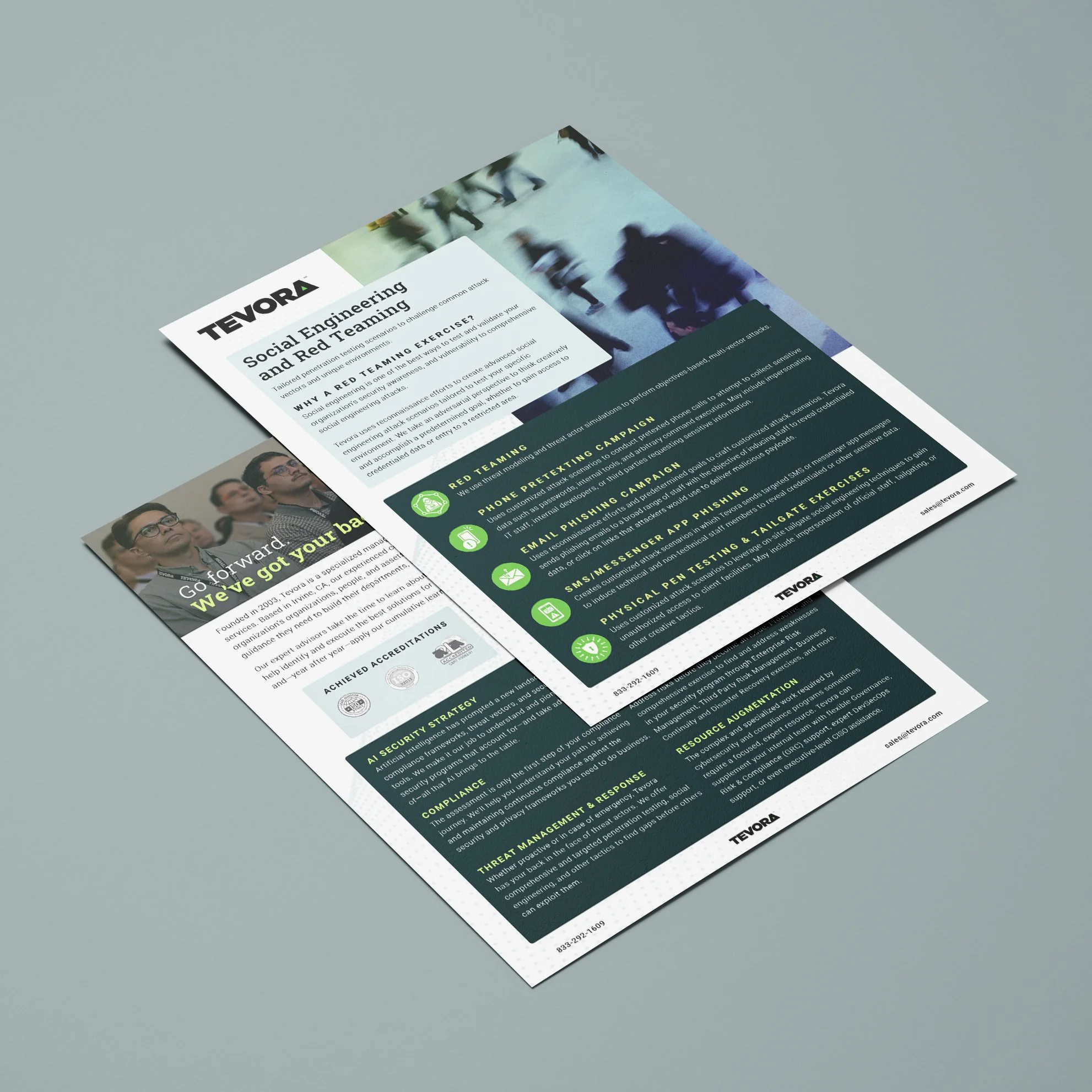 Tevora is a cybersecurity and technology consultancy established in 2003. The organization is focused on helping Chief Information Security Officers and other security leaders to keep organizations compliant and safe. Tevora’s clients span from Fortune 500 companies, to innovative start-ups, and even to the small businesses that make the world go around. As the in-house Graphic Designer, I worked closely with multiple teams to develop and create clear, communicative, and visually compelling materials that elevated the organization’s visual language and aligned with brand guidelines and messaging.